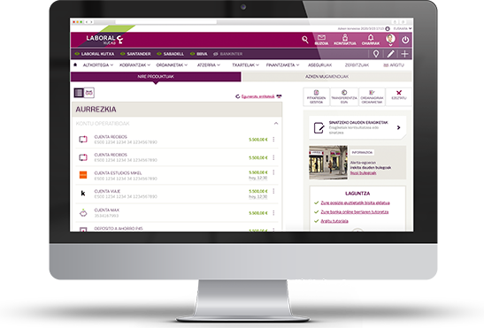 LABORAL Kutxaren Online Bankan ere zure beste erakundeen kontuekin operazioak egin ditzakezu.